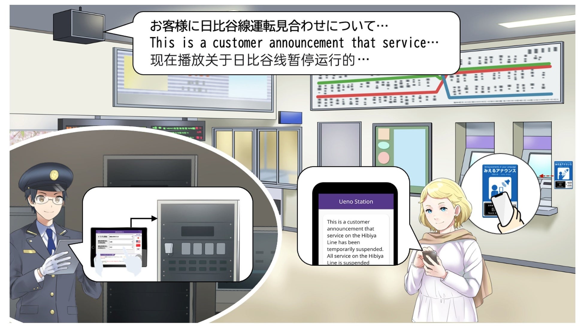 駅構内のアナウンスを多言語で文字化する「みえるアナウンス」詳細