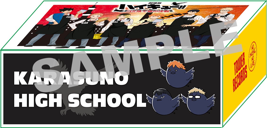 Blu-ray & DVD『劇場版ハイキュー‼ ゴミ捨て場の決戦』発売を記念して、TOWER RECORDS CAFE(タワーレコードカフェ)4店舗でコラボカフェを開催します。日向翔陽、影山飛雄、月島蛍、孤爪研磨、黒尾鉄朗、夜久衛輔の6キャラクターは今回限りの描きおろしデザインで登場します。