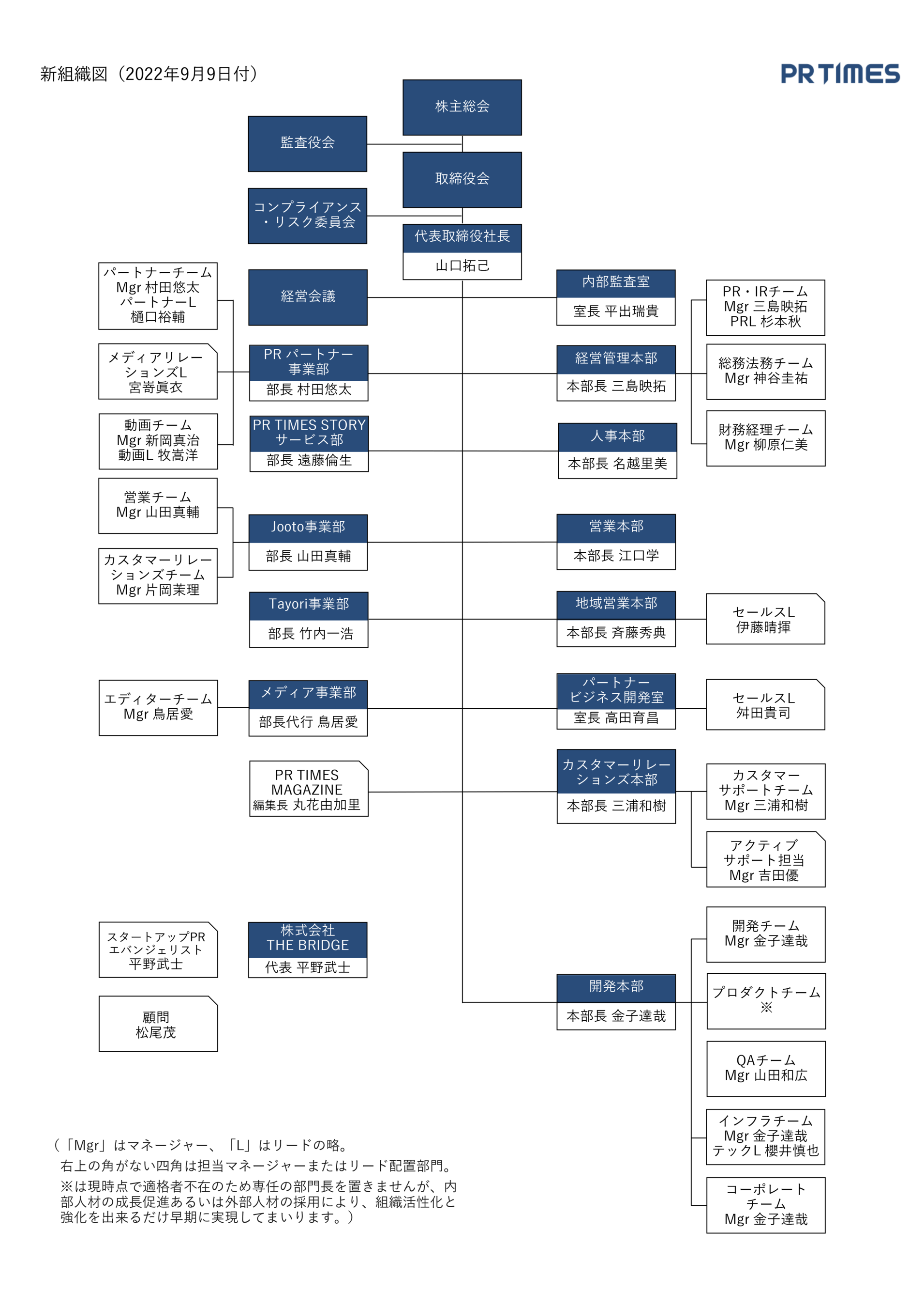 PR TIMES、組織変更および人事異動を発表(2022年9月9日付)