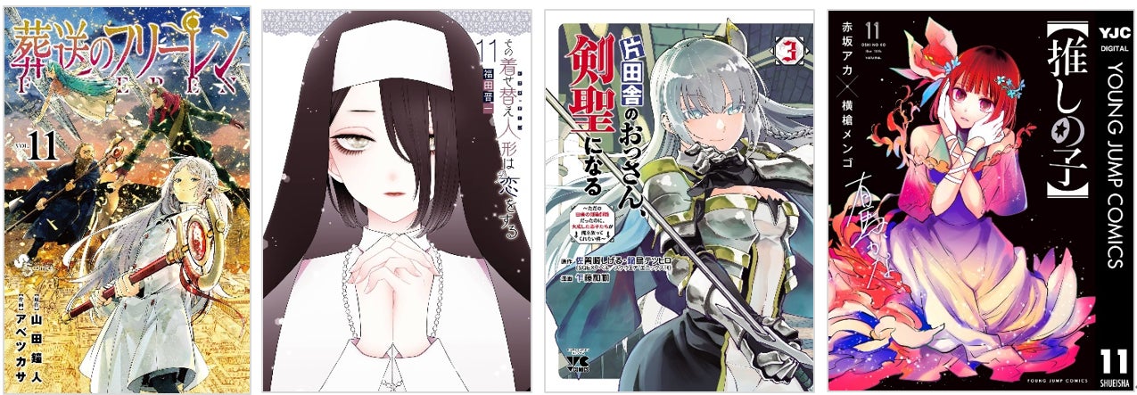 総合ランキング1位を獲得したのは、『葬送のフリーレン(11)』(少年サンデーコミックス/小学館)でした。魔王軍を倒した勇者一行のその後を描く後日譚はテレビアニメ化でさらに人気と話題を呼び、今回の1位獲得につながりました。また、2位の『その着せ替え人形は恋をする11巻』は、上半期ランキング同様、コスプレイヤーのギャルと衣装制作担当の男子高校生とのラブコメストーリーが支持を集めての結果となりました。