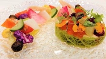 野菜は大阪泉州と四国讃岐から、流通数の限られた希少な地野菜や西洋野菜を厳選。365日の四季の野菜や海鮮をコースに仕立てて提供します。