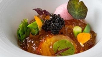 『ミシュランガイド』一つ星に掲載され、新鮮な魚介、丹波篠山産を中心とする完全有機野菜など厳選した素材の魅力を引き出した本格的なフランス料理を提供。