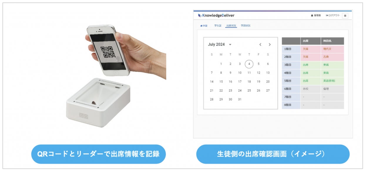 QRコードはKnowledgeDeliver上で生成され、出席データは学習データと合わせて一元管理されます。