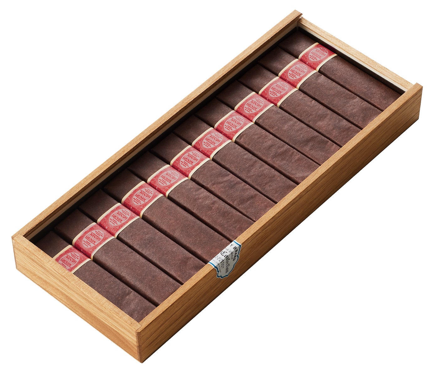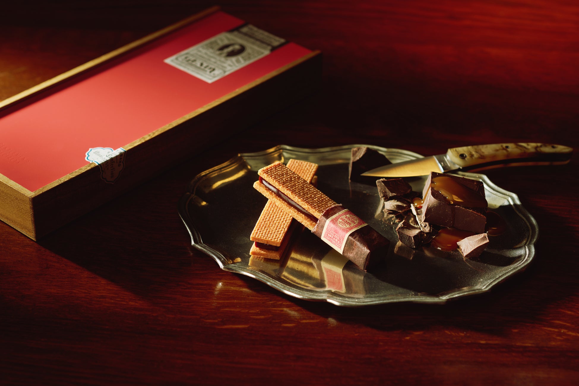 吟味した素材とレシピで、一本ずつハンドメイドする紳士のための、プレミアムビターキャラメルバー。 深く深くローストした、ビターキャラメルを、スパイスをきかせたクッキーとともに。 スパイシーな芳香とわずかな塩味が過ぎ去ると、こっくりと濃厚なビターがほどけていく。 それはまるで、お気に入りのシガーのように。