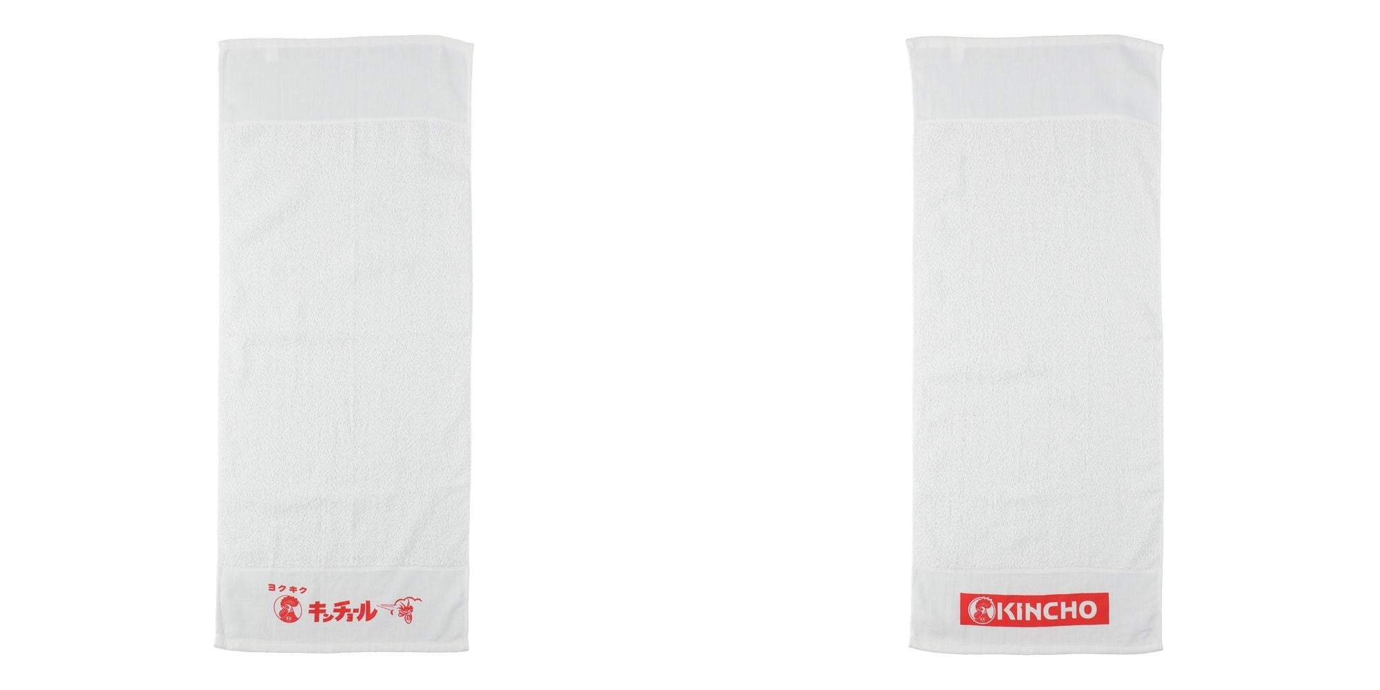 「KINCHO」のロゴが入った、昔ながらの温泉タオル。薄くて軽いので絞りやすく、乾きやすい。