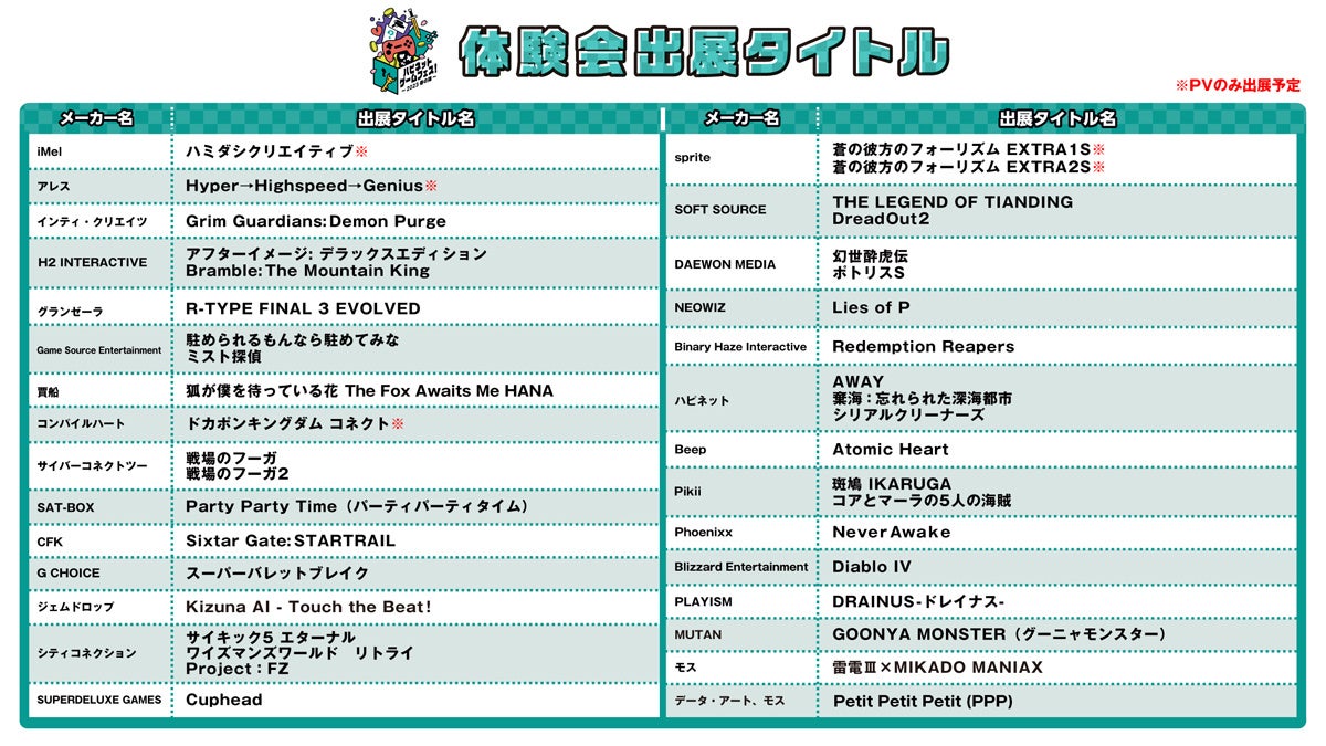 また「CERO:Zコーナー」の壁面に、フォトスポットを設置します。2023年4月13日(木)PlayStation®5、PlayStation®4にてパッケージ版発売予定の「Atomic Heart」では、ゲーム内で登場する実物大の武器レプリカや、キャラクターの立て看板を展示します。また2023年6月6日(木)にパッケージ版発売予定の「Diablo IV」は、日本で初めてのオフラインイベントの参加で、シリーズファンの方はもちろん、話題の新作にご興味のある方も、ぜひお立ち寄りください。