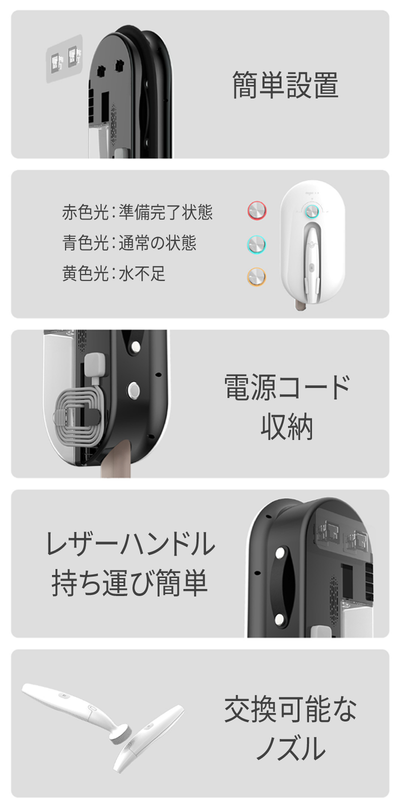 - 片手で持てるハンディータイプ