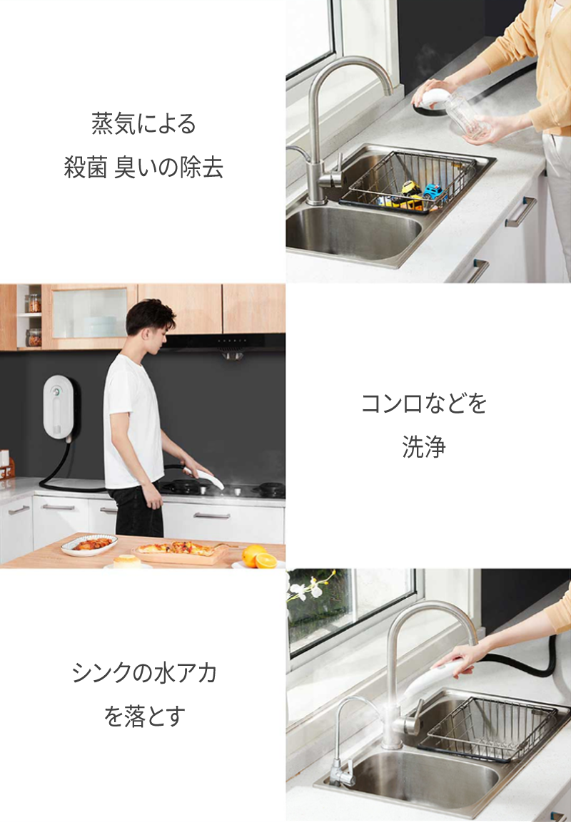 - 105度の蒸気で油汚れを落とす