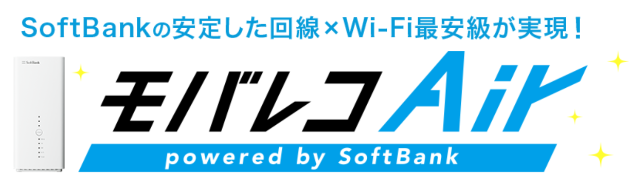 「モバレコAir」は工事不要、データ容量制限なし、12ヵ月間、実質月額927円(税込)~Wi-Fi使い放題でご利用いただけます。ソフトバンク社との公式コラボレーションでSoftBank Airを衝撃の低価格で実現しました。