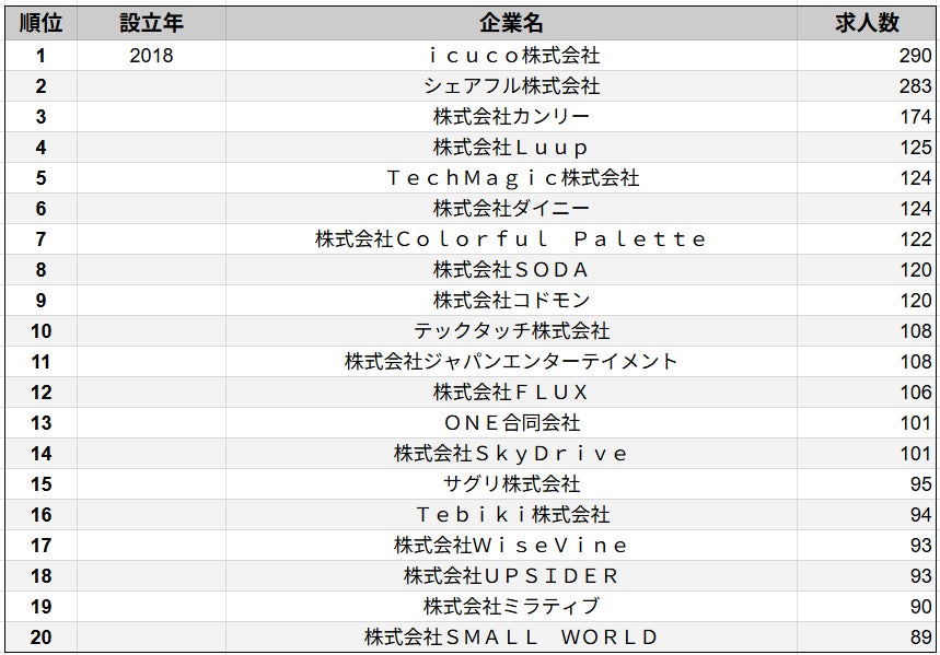【2025年最新版】2018年設立企業の求人数ランキングTOP20を発表/SalesNow DBレポート