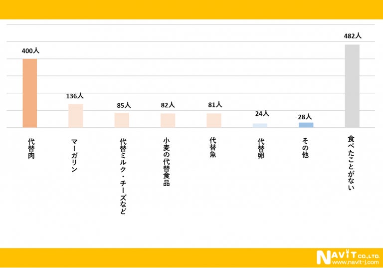 質問:どの様な代替食材を食べたことがありますか?(複数回答可)(対象:1,000名)(回答数:1,318)