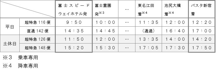 以下、主なバス停について記載しています。すべての停車情報などの詳細は、小田急ハイウェイバスホームページからご確認いただけます。