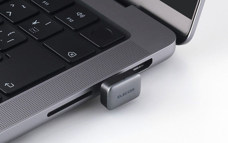 超小型設計で、ノートパソコンに挿した際の本体の高さは約9mmと非常にコンパクト。本体の出っ張りが少ないため、挿したままでも邪魔にならず、持ち運びも簡単です。