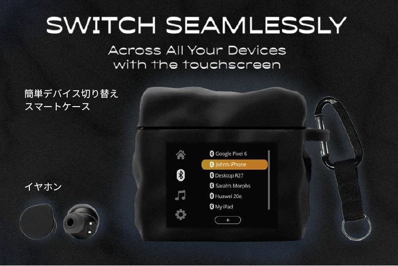 Morph イヤホンを保護するスマートケースは、充電と様々なデバイスにシームレス切り替え操作ができます。