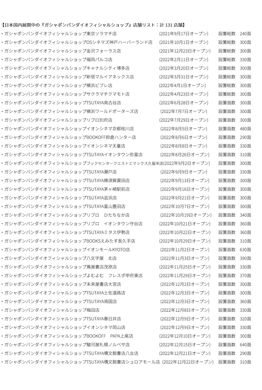 【日本国内展開中の『ガシャポンバンダイオフィシャルショップ』店舗リスト:計133店舗】