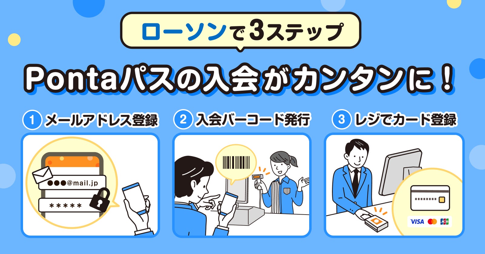 ・ローソンの店頭にて「かんたん3ステップ」により、数分でPontaパスに入会できます。