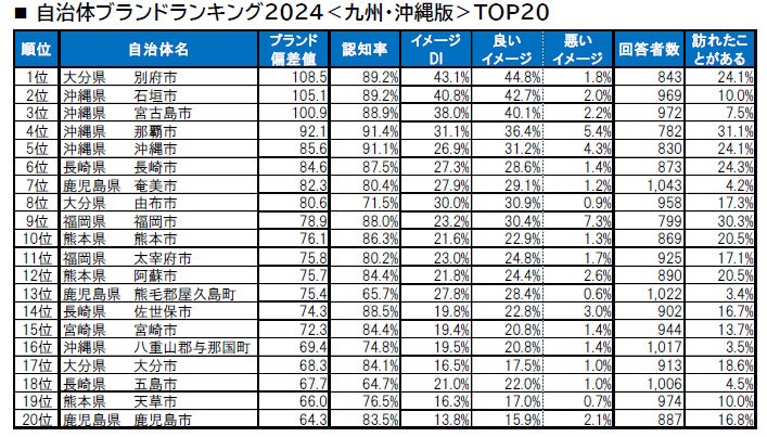 いい部屋ネット「自治体ブランドランキング2024<九州・沖縄版>」(街の住みここちランキング特別集計)発表