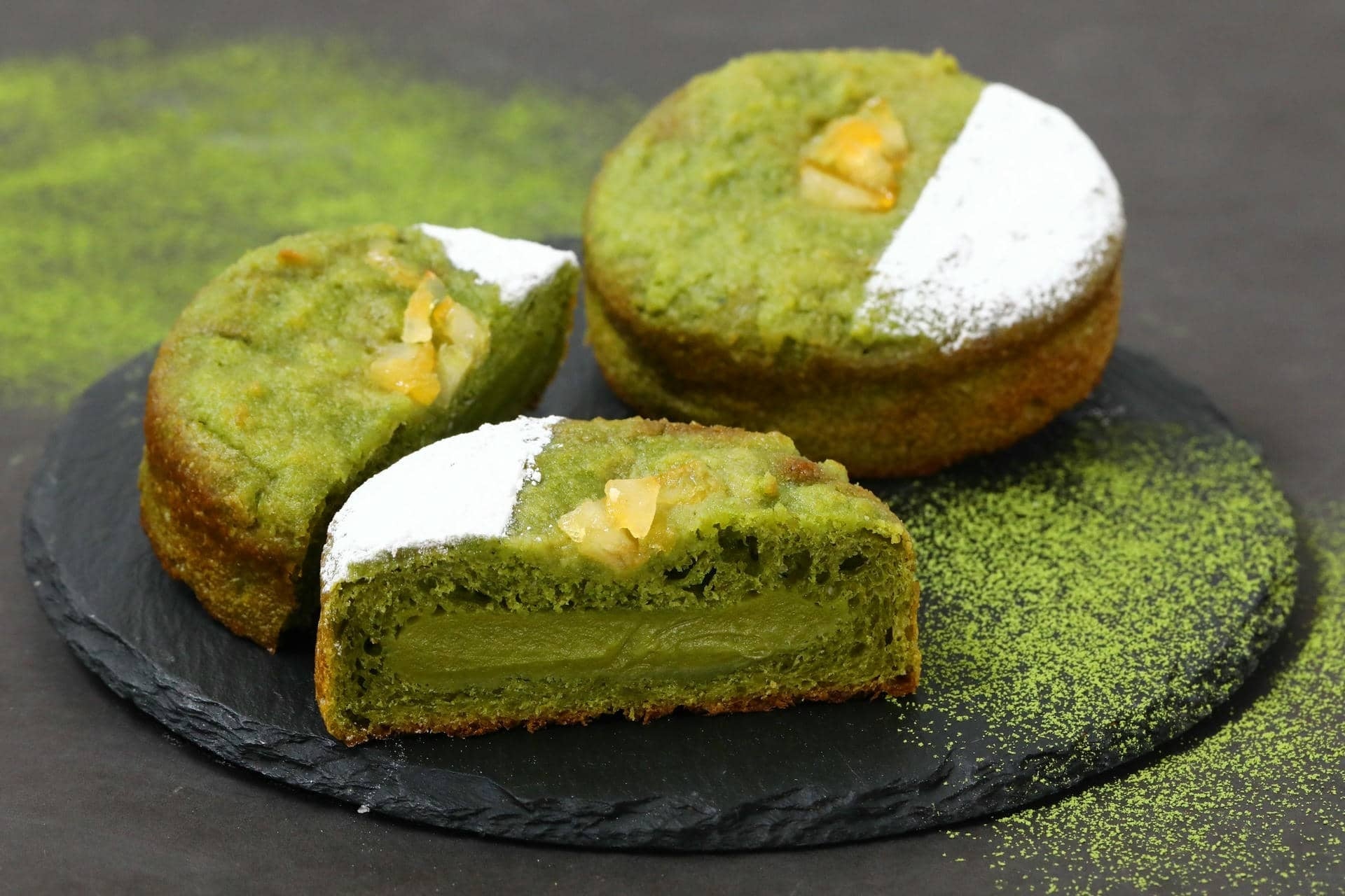 い、レモンの砂糖漬けをトッピング。なめらかな口どけの抹茶クリームが織りなす奥深い味