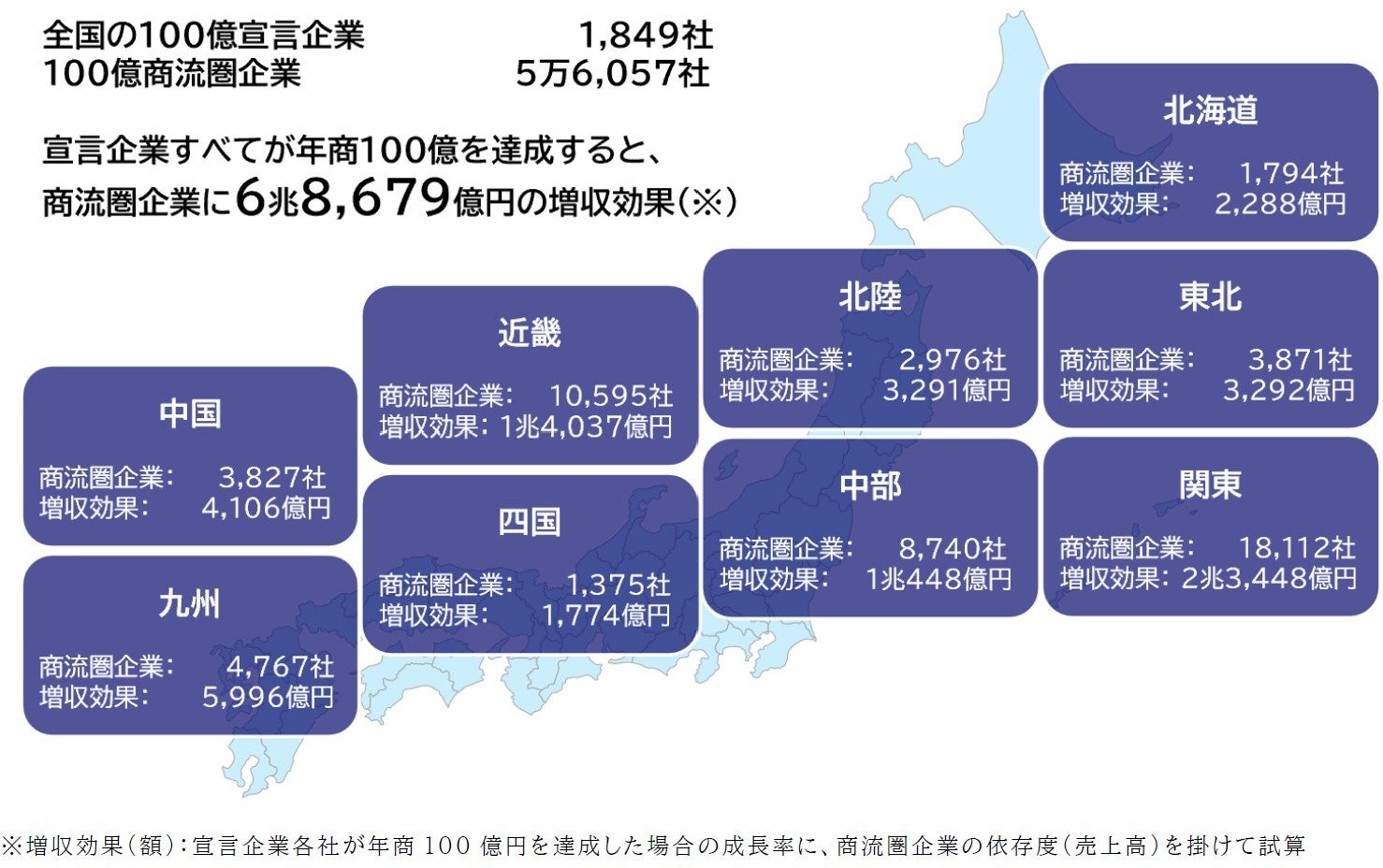 100億宣言企業は2,000社を突破、3大都市圏以外にも2兆円の増収効果