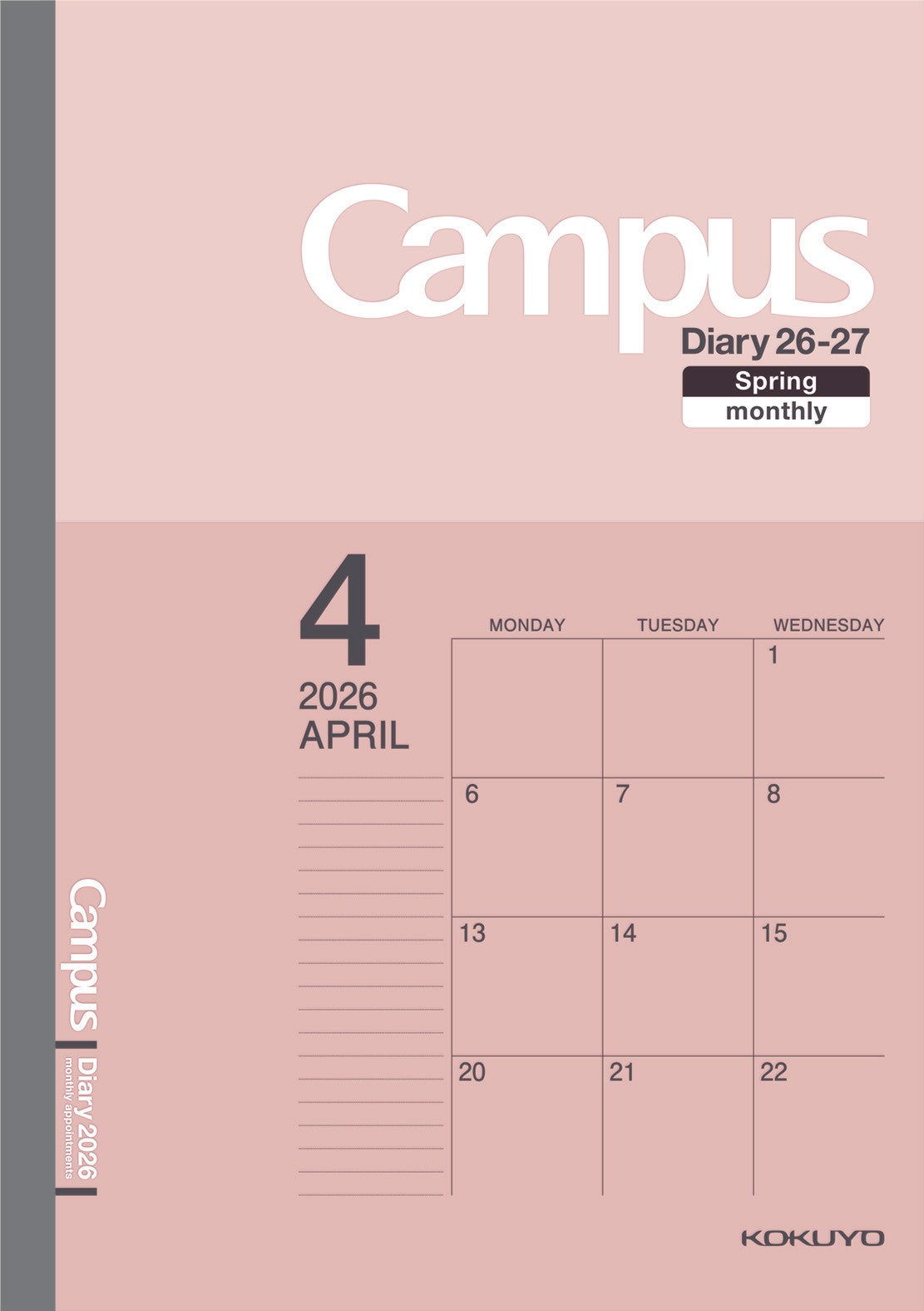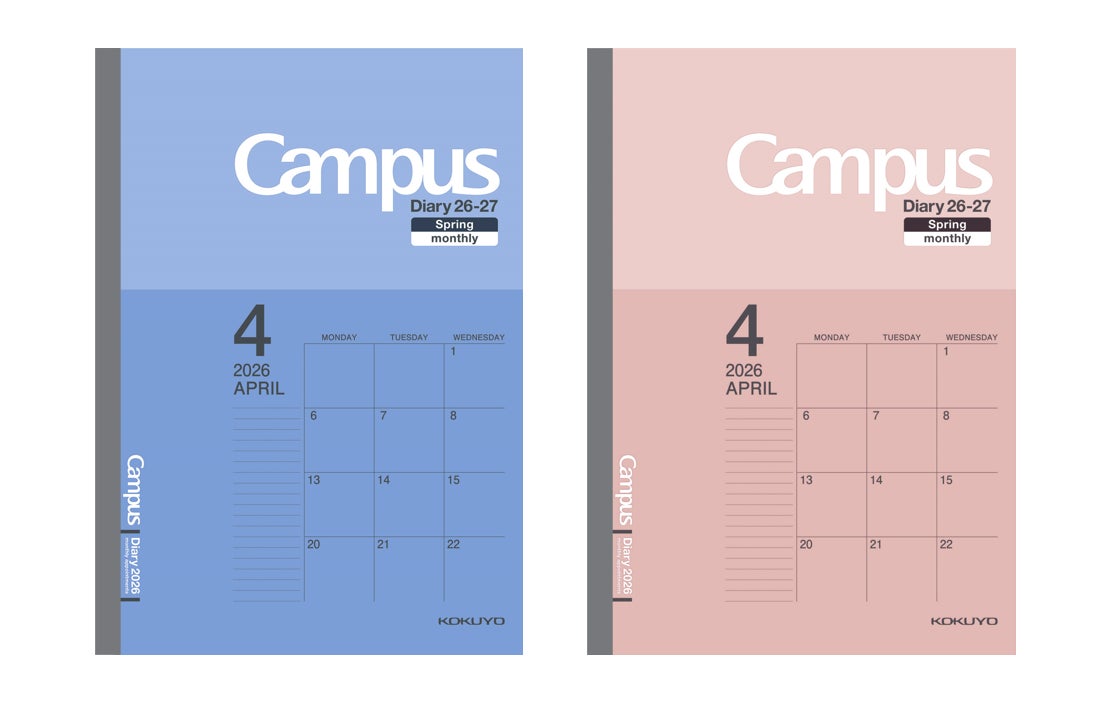 コクヨ株式会社(本社:大阪市/社長:黒田 英邦)は、キャンパスノートと同じコクヨオリジナル原紙を使用したシンプルな手帳「キャンパスダイアリー」シリーズより、マンスリー・スタンダードタイプの4月始まり版を、2026年1月中旬より順次発売します。