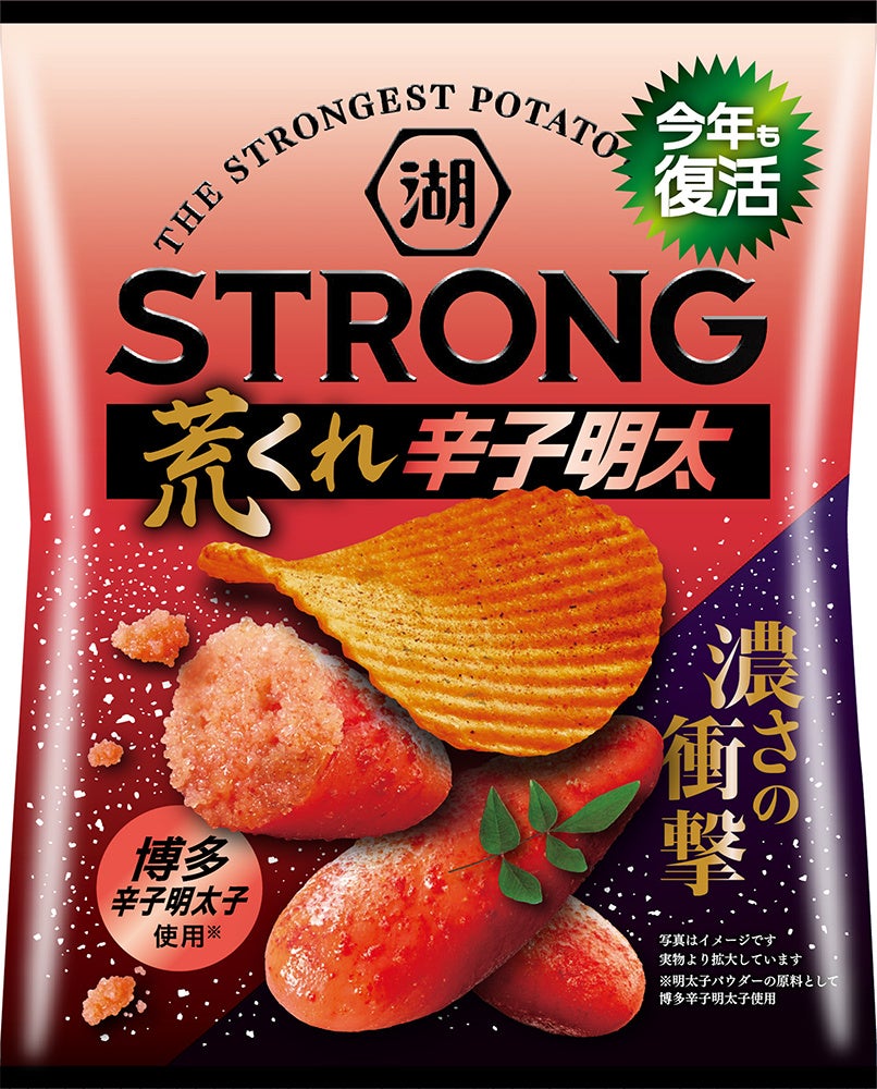 今年も復活!濃厚な明太子の旨味とピリッとした辛味がガツンと溢れ出す「湖池屋STRONG ポテトチップス 荒くれ辛子明太」