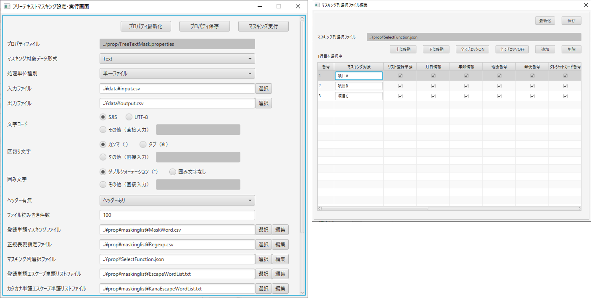 専用GUIより、画面上でのプロパティ設定やマスキング処理の実行を可能にしました。