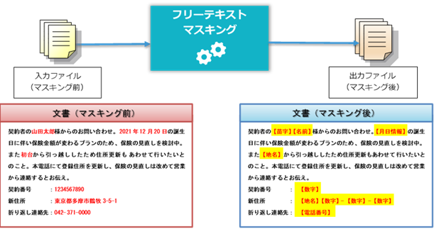 フリーテキストマスキングは、これまで人的作業となっていたフリーテキスト内の個人情報の検出・マスキングを機械的に行うソリューションとして、2021年に提供を開始しました。