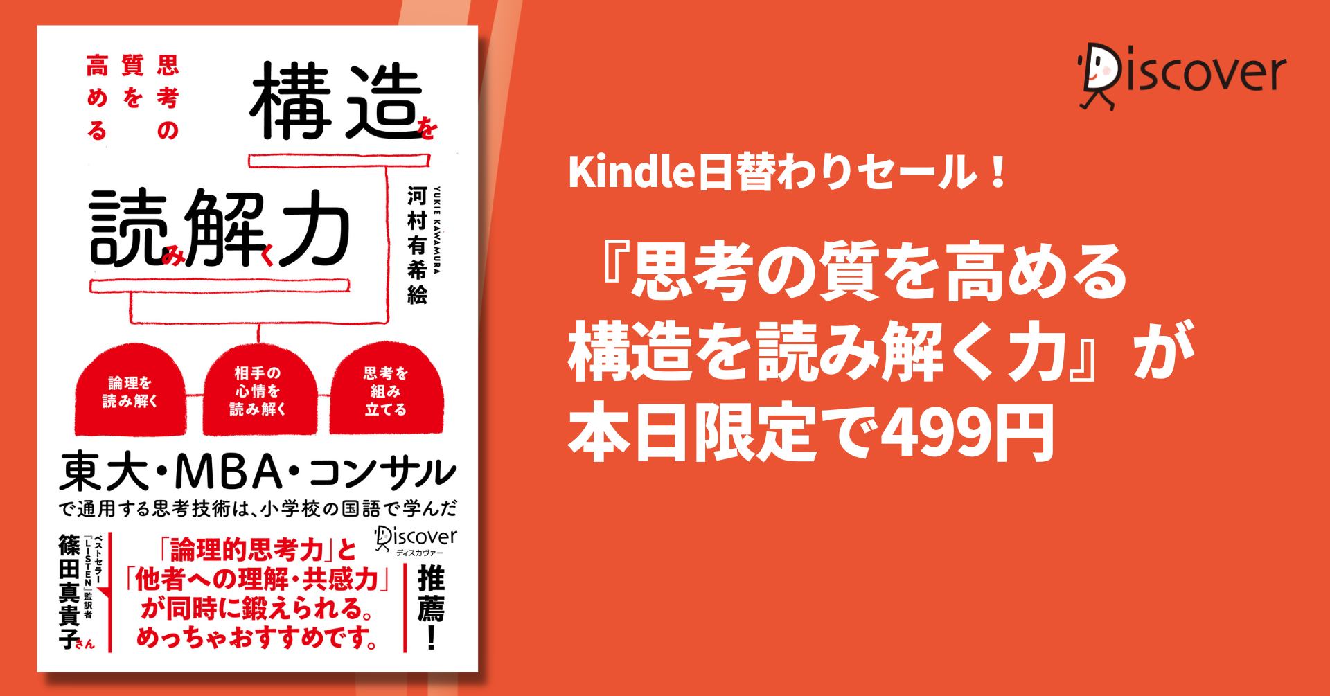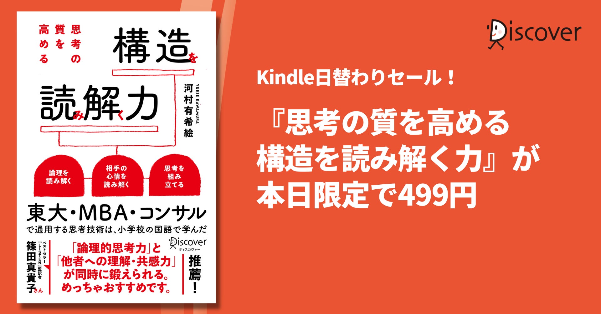 東大・MBA・コンサルで通用する思考技術は「構造読解」で養う!『思考の質を高める 構造を読み解く力』本日限定で499円!