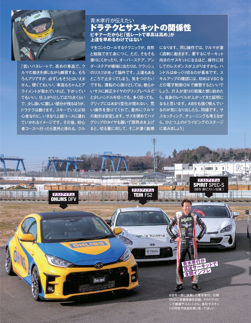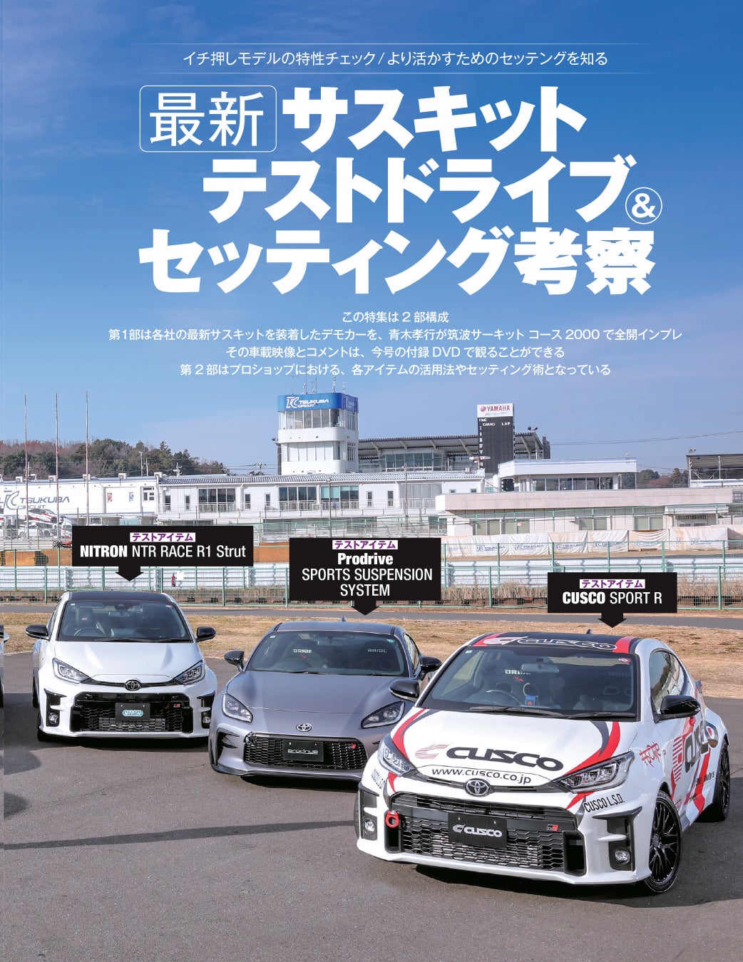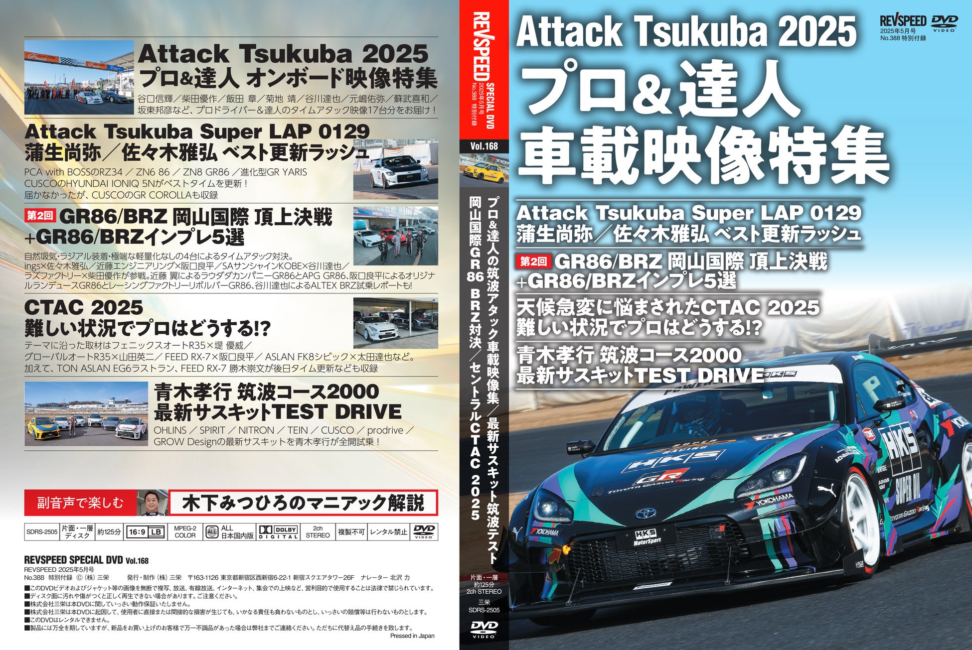付録DVDは『Attack Tsukuba 2025オンボード映像集』『Attack Tsukuba SUPER LAP 0129 蒲生尚弥/佐々木雅弘 ベスト更新ラッシュ』『岡山国際GR86/BRZ頂上決戦』『セントラルサーキットCTAC 2025』『青木孝行×筑波サーキット 最新サスキット実力検証』の5本・総尺120分(副音声 木下みつひろマニアック解説付き)で、ドラテク&チューニングの学べる映像がズラリ!