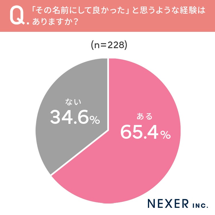 65.4%の方が「その名前にして良かった」と思うような経験が「ある」と回答しています。