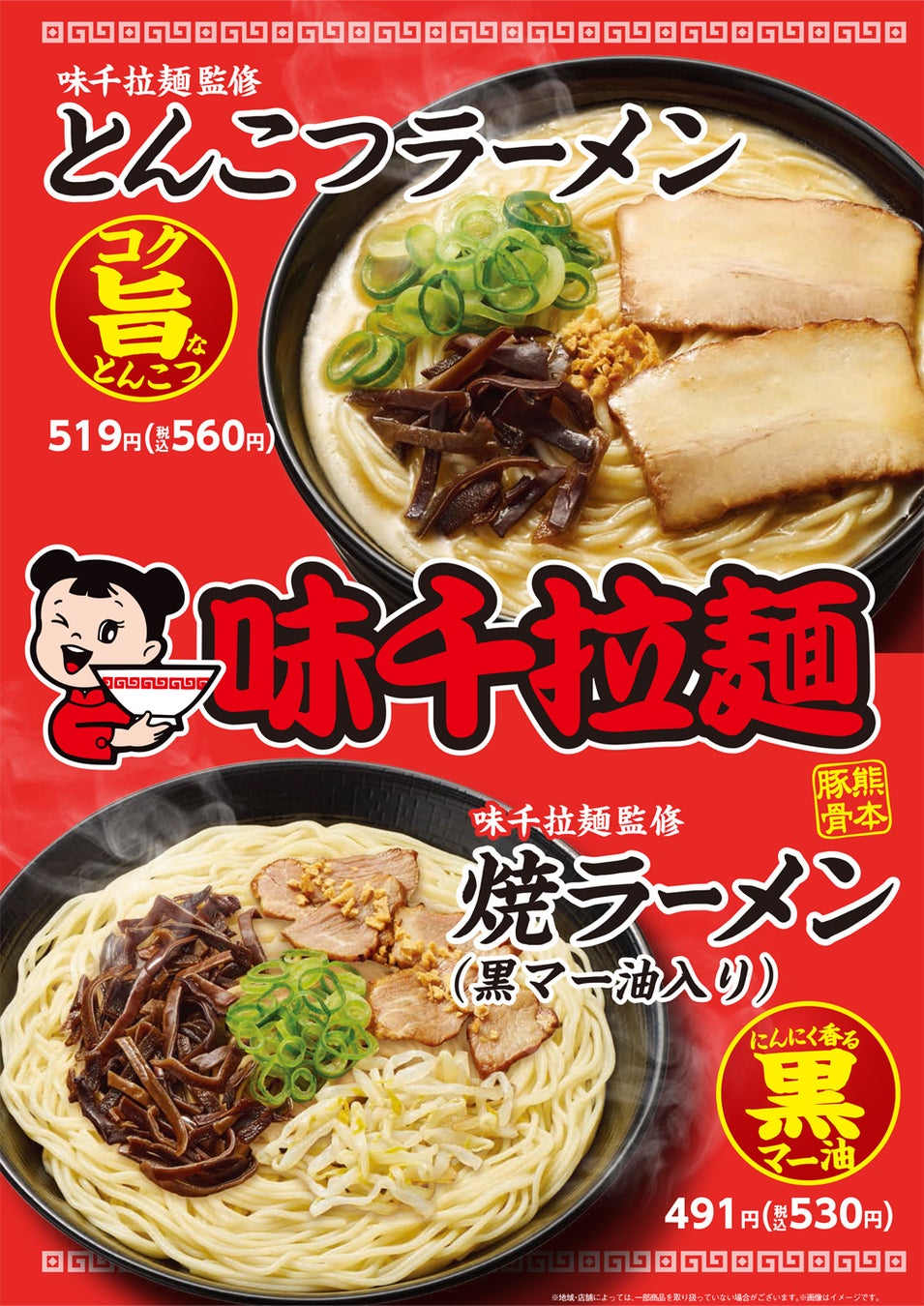 【九州地方限定】熊本ラーメンの人気店「味千拉麺」監修 第2弾白味湯や万味油(マー油)で味付けした「とんこつラーメン」と焦がしにんにく香る黒マー油を使った「焼ラーメン」が登場
