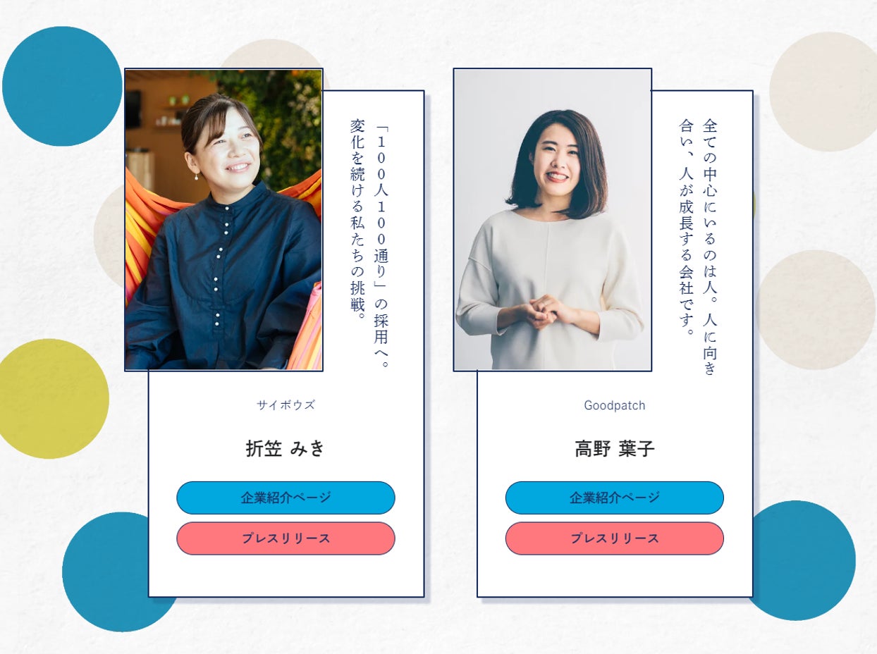 今回、採用担当者の方々が主導し、採用に関する各社施策のプレスリリースを新発表する際、そこに込めた採用担当者の想いを顔写真付きのコメントで記載いただきました。このような採用主導のプレスリリースは、採用を人と人の対話にしたいと願う企業にとって、自己開示から対話を目指す一つのスタイルとして、今後さらに活用されていくものと考えています。