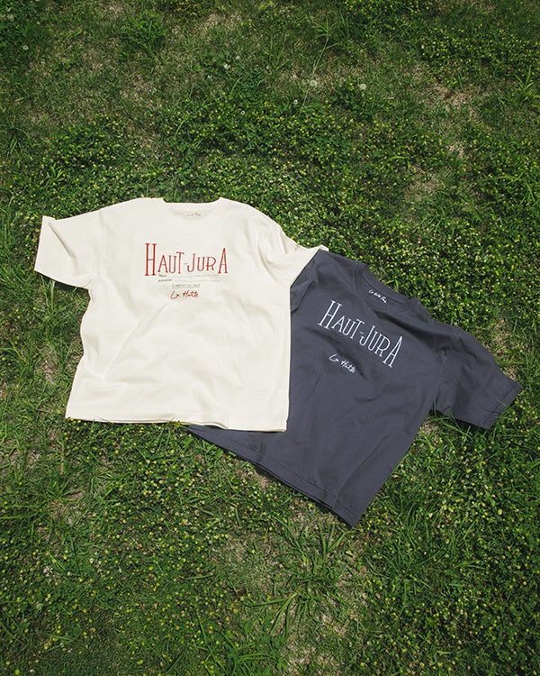 フランスとスイスの国境にあるジュラ山脈一帯を指す地名を刺繍し、プリントと組み合わせた繊細なロゴTシャツになっています。