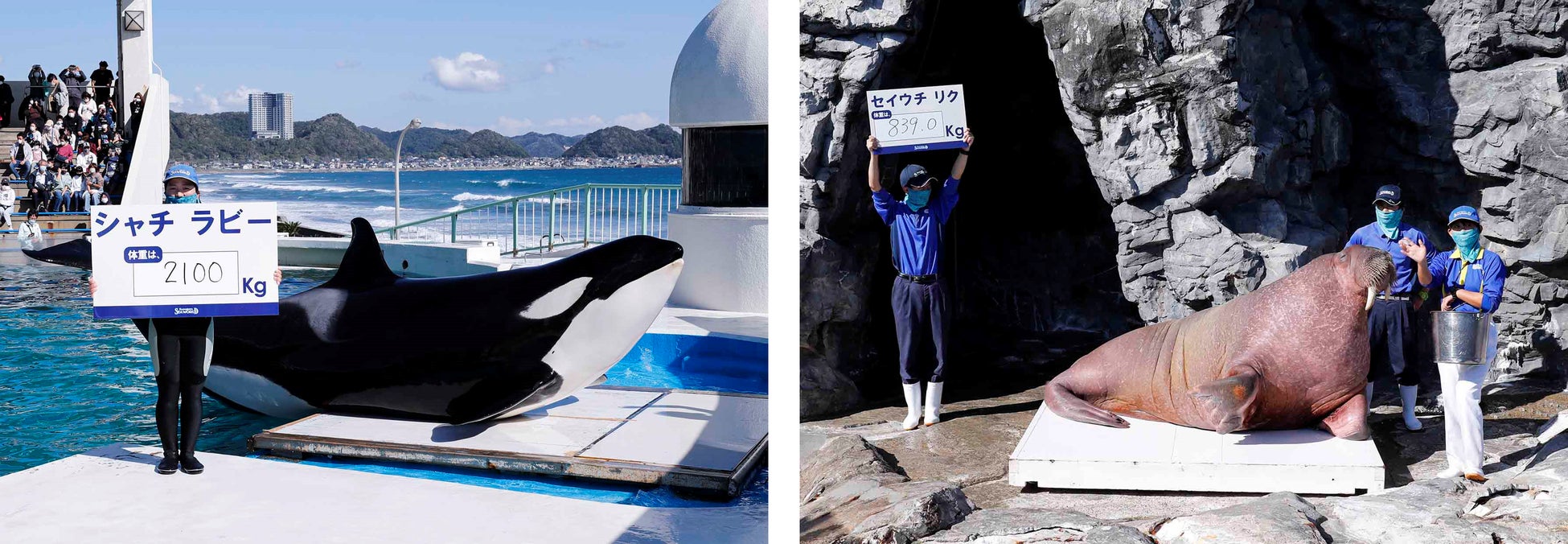 鴨川シーワールド「海の生き物 公開体重測定」結果報告 11月3日(木・祝)計量記念日にちなみ、お客様の目の前でシャチとセイウチの体重測定を実施