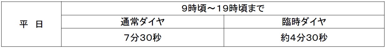 (2)日中時間帯は増発し、下記の運転間隔となります。(1時間あたり5~6本増発します)