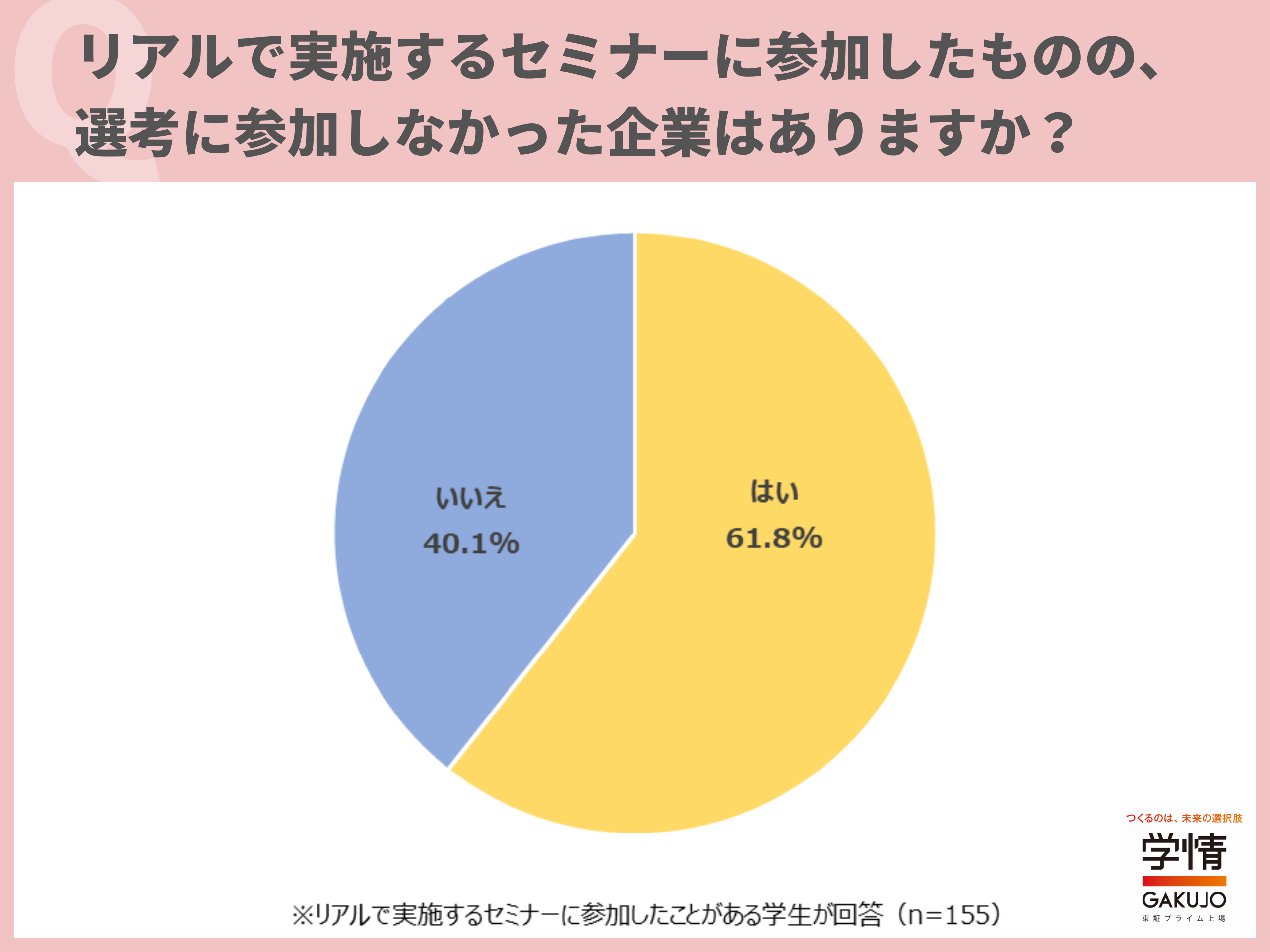(3)リアルで実施するセミナーに参加したものの、選考に進まなかった経験がある学生は約6割