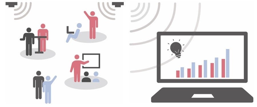 室内の利用状況をセンシングし、人流解析を行うことで、空間利用や組織間交流状況データを可視化。導き出された状況を分析しそれにもとづいたアップデートをすることで、オフィスをより働きやすい空間に進化させます。