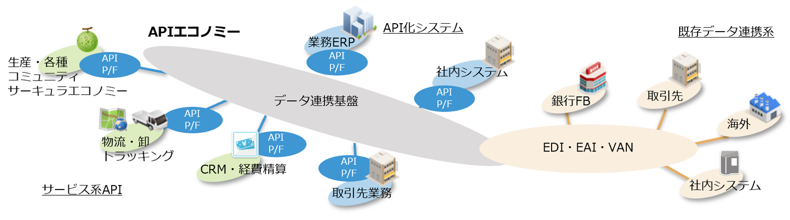 産業界でも、APIの利活用が注目され、DXの推進が益々加速し、企業が持つシステムやデータを安全かつ標準化し公開するなどのデータ利活用、他社サービスのデータや機能を自社サービスに組み込み提供するといったことによる、新たな経済的価値“APIエコノミー”を創出する流れが強まっています。