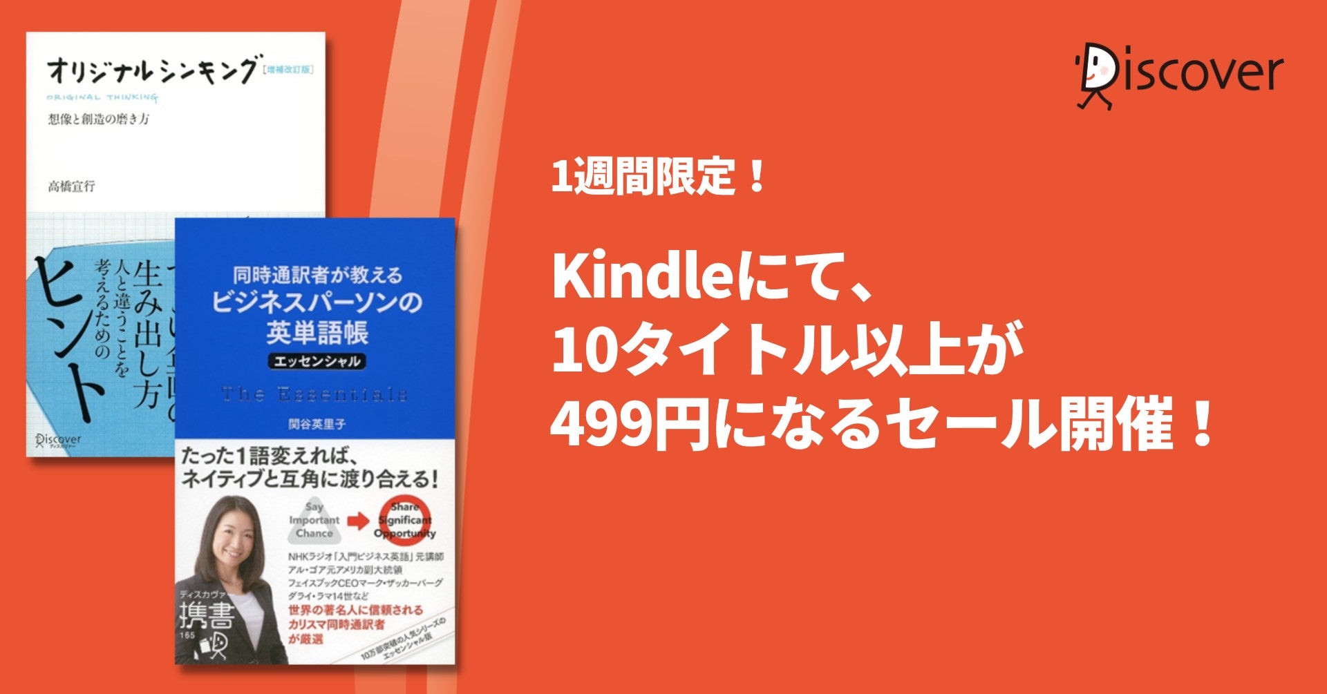 11/10から11/16の1週間限定で、Kindleにて、ディスカヴァーの電子書籍12タイトルが499円になるキャンペーンを開催します。