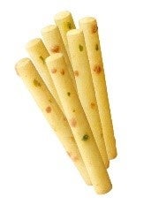●関西のきつねのおうどんをイメージしました。カツオと昆布の関西風のおだしに、「じゃがりこ」史上初のおあげ粒を練り込み、後引く甘さがクセになります。うどんの薬味の定番、乾燥ネギも練り込み、見た目の彩りも楽しめます。