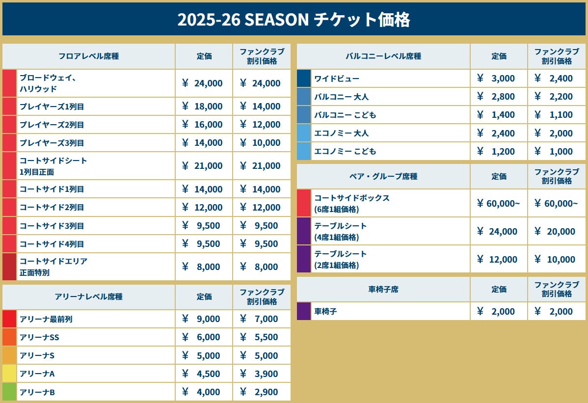 ・車椅子席をご利用の場合は、ご本人と付き添いの方全員分の観戦チケットが必要となります。駐車場については台数に限りがございますので、状況により駐車場のご利用がいただけない場合がございます、予めご了承ください。2024-25シーズンより車椅子席も指定の場所でのご観戦となります。