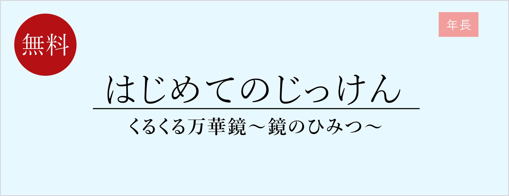 はじめてのじっけんは、年長のお子さまを対象とした「身近な不思議を楽しく学ぶ」体験型の理科実験イベントです。今回は、「くるくる万華鏡~鏡のひみつ~」をテーマに、光の反射を利用した「万華鏡」を作ります。筒の中で向かい合わせになった鏡がつくりだす世界を体験し、「なぜそうなるのか」を考え、好奇心を育てます。