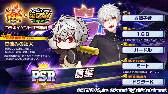 株式会社コナミデジタルエンタテインメントは、モバイルゲーム『パワフルプロ野球 栄冠ナイン クロスロード』(以下、『パワプロ 栄冠クロス』)において、「にじさんじ甲子園2025」応援キャンペーンを本日8月5日(火)から開始したことをお知らせします。