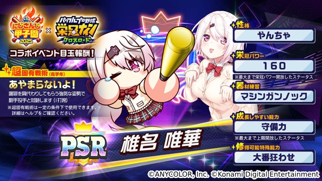 期間中ログインするだけで獲得できる「[PSR]椎名 唯華」・ 「[PSR]葛葉」をチームに加えて、名門野球部を目指しましょう!