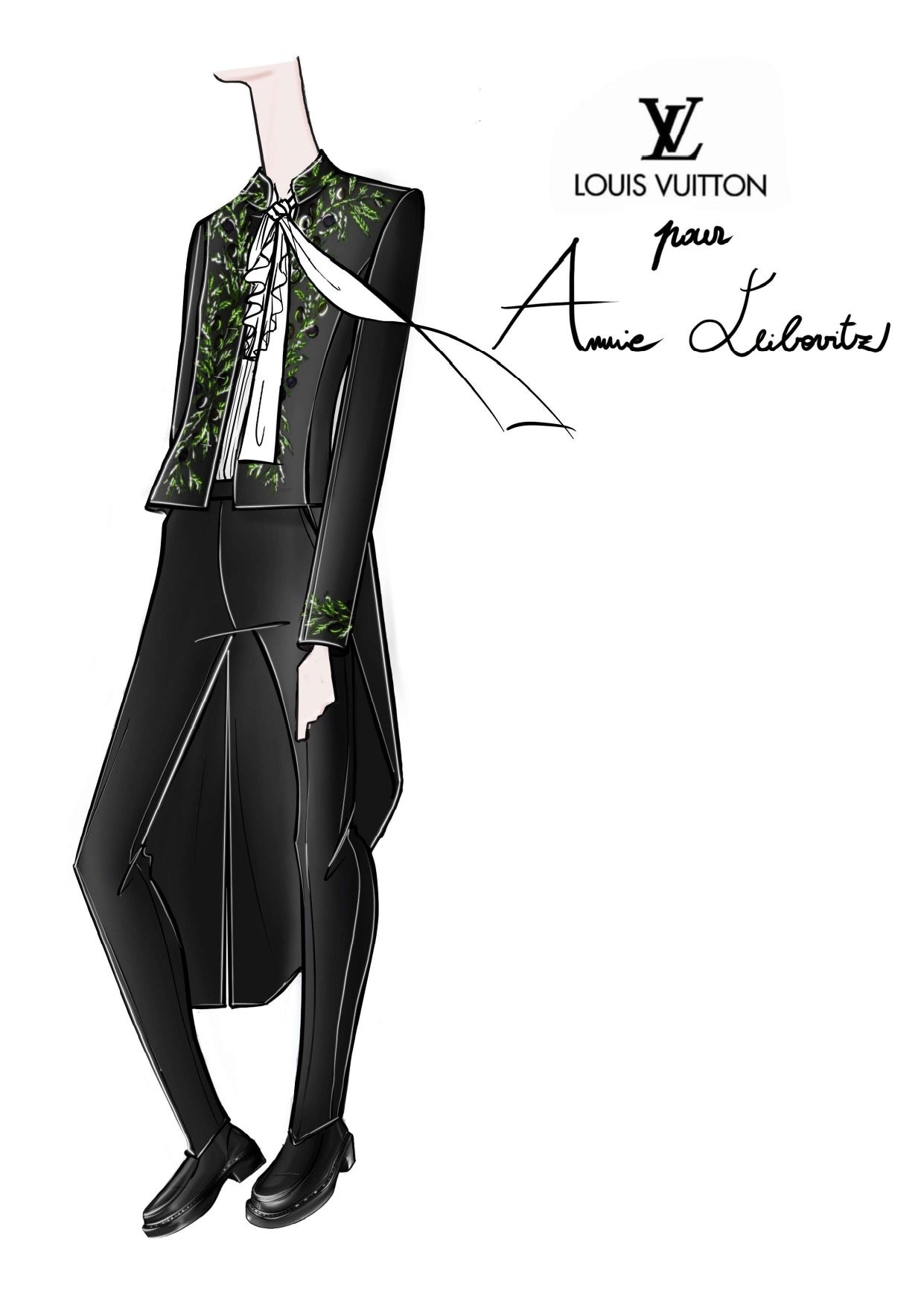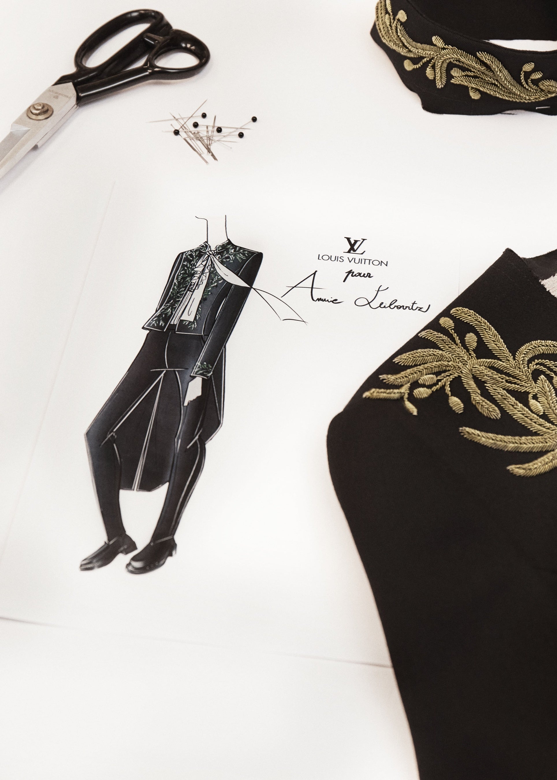 「アニー・リーボヴィッツのために芸術アカデミー会員の礼装をデザインでき、とても光栄に感じる。才能に溢れ、自由で先見性のあるアーティストである彼女の写真作品に敬意を表します」とニコラ・ジェスキエールは語ります。