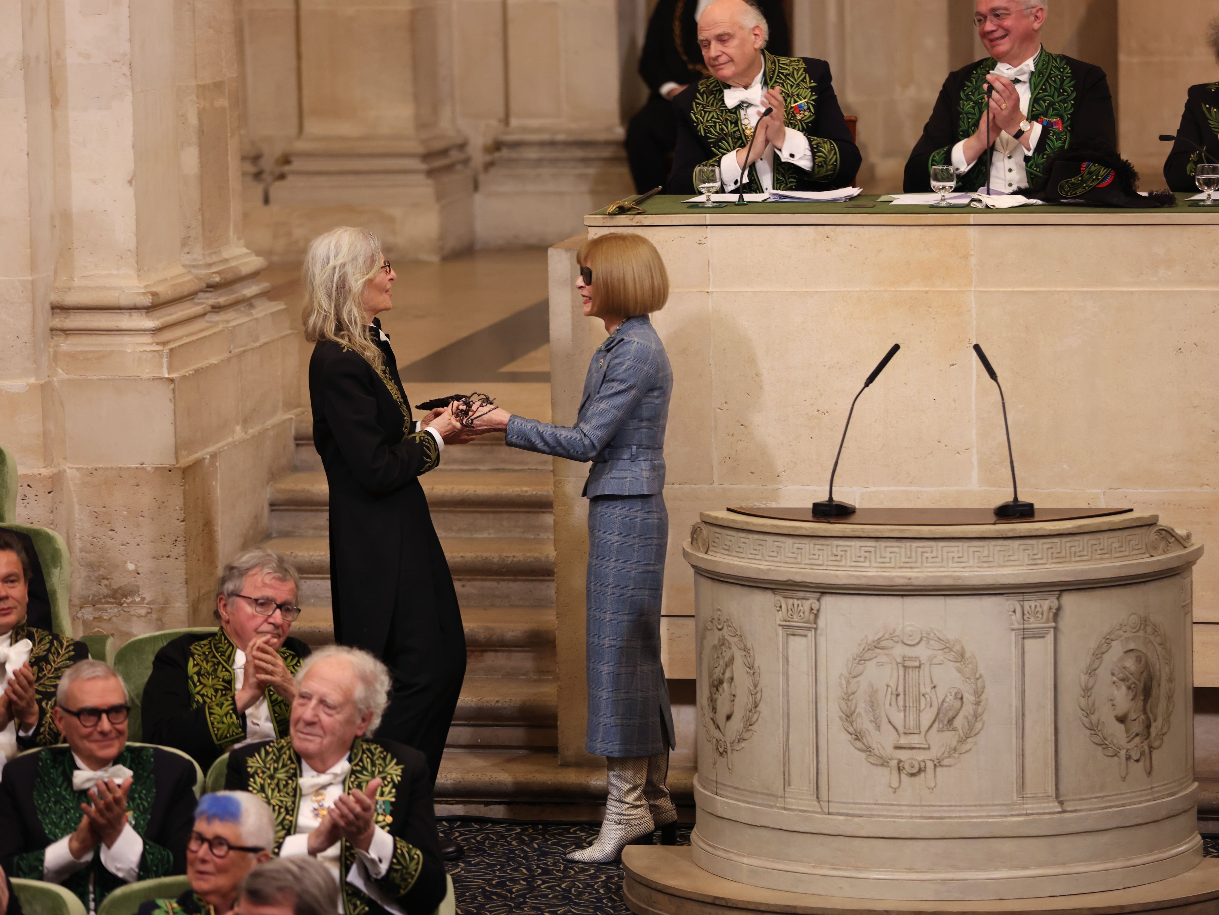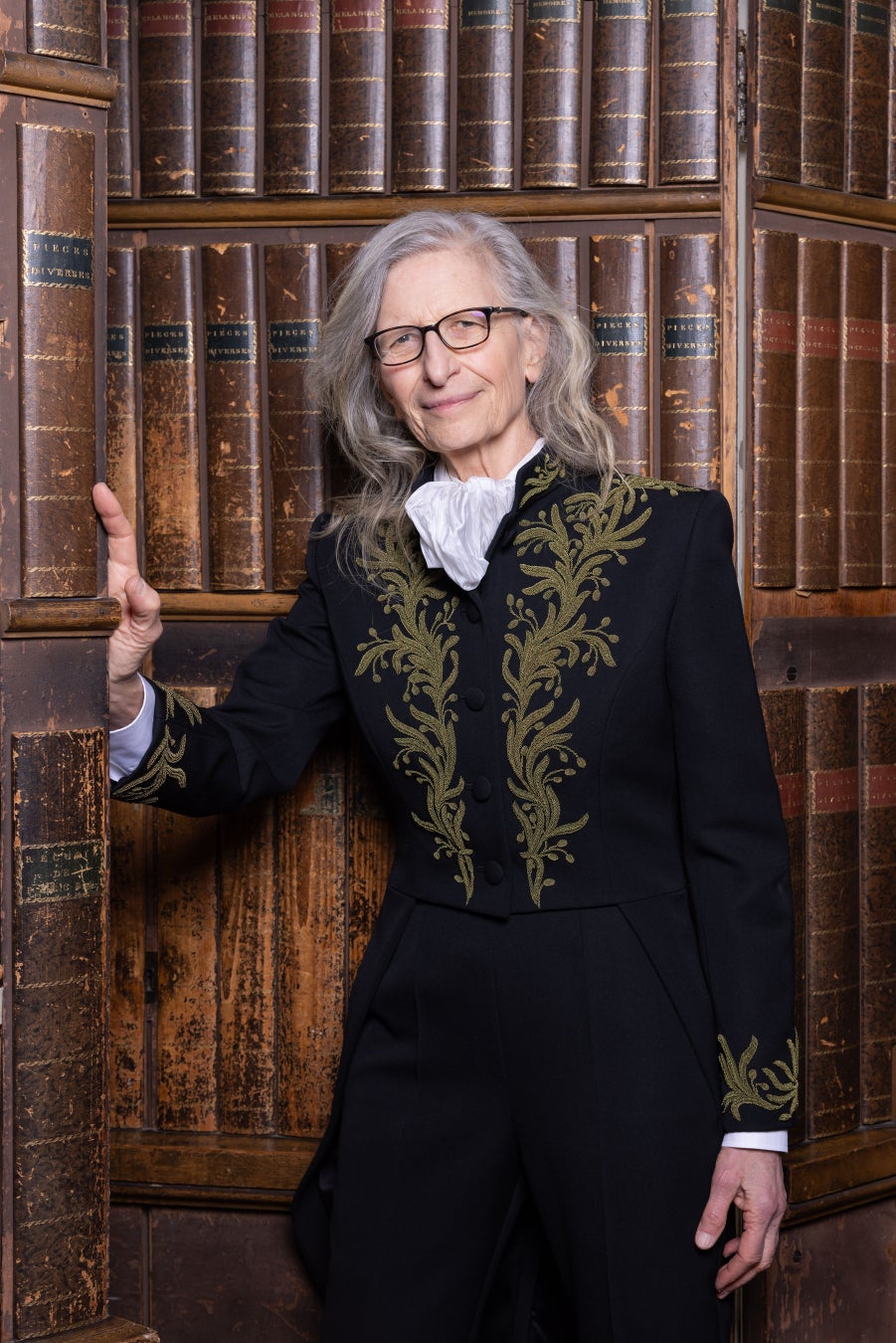 【ルイ·ヴィトン】芸術アカデミー会員の就任式に出席したアニー·リーボヴィッツの礼装をルイ·ヴィトンがデザイン