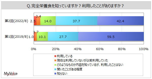 マイボイスコム株式会社(東京都千代田区、代表取締役社長:高井和久)は、2回目となる『完全栄養食』に関するインターネット調査を2022年8月1日~5日に実施しました。調査結果をお知らせします。