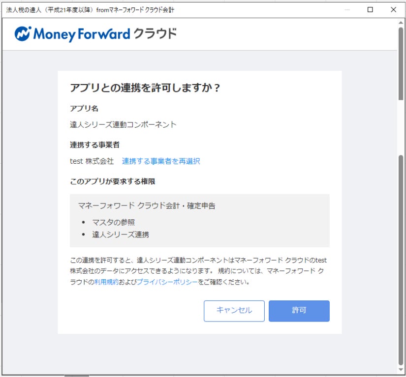 1.(※初回のみ)『達人シリーズ』と『マネーフォワード クラウド』の連動コンポーネントを設定します。