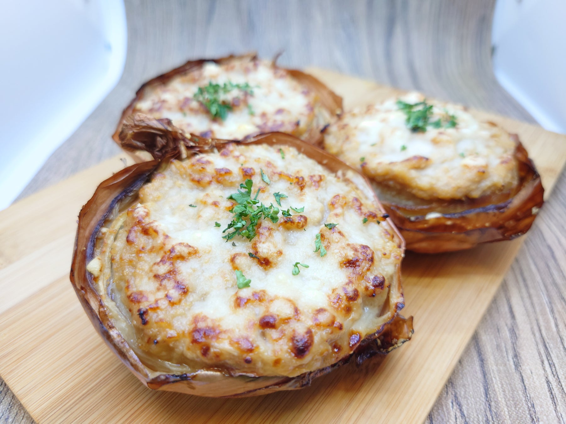玉ねぎをじっくり丁寧にローストすることで玉ねぎ本来の旨味を最大限に引き出し、ツナ味噌ソースとチーズを乗せて香ばしく焼き上げた一品。ローズマリーが深い風味を出しています。