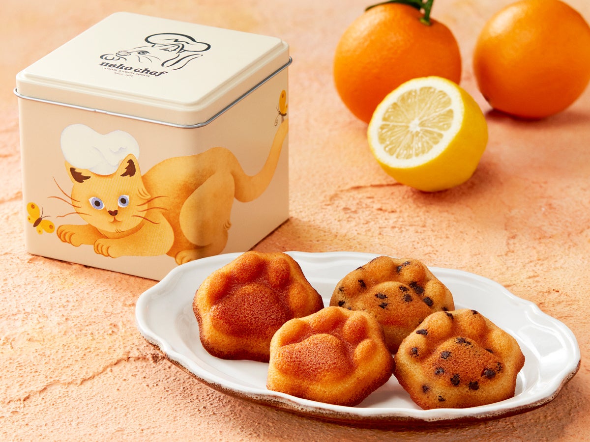 当ブランドで大人気となっているオリジナル缶に入ったフィナンシェ。今年は新たなデザインにて、ほっこり癒されるネコシェフスイーツをお届けいたします!